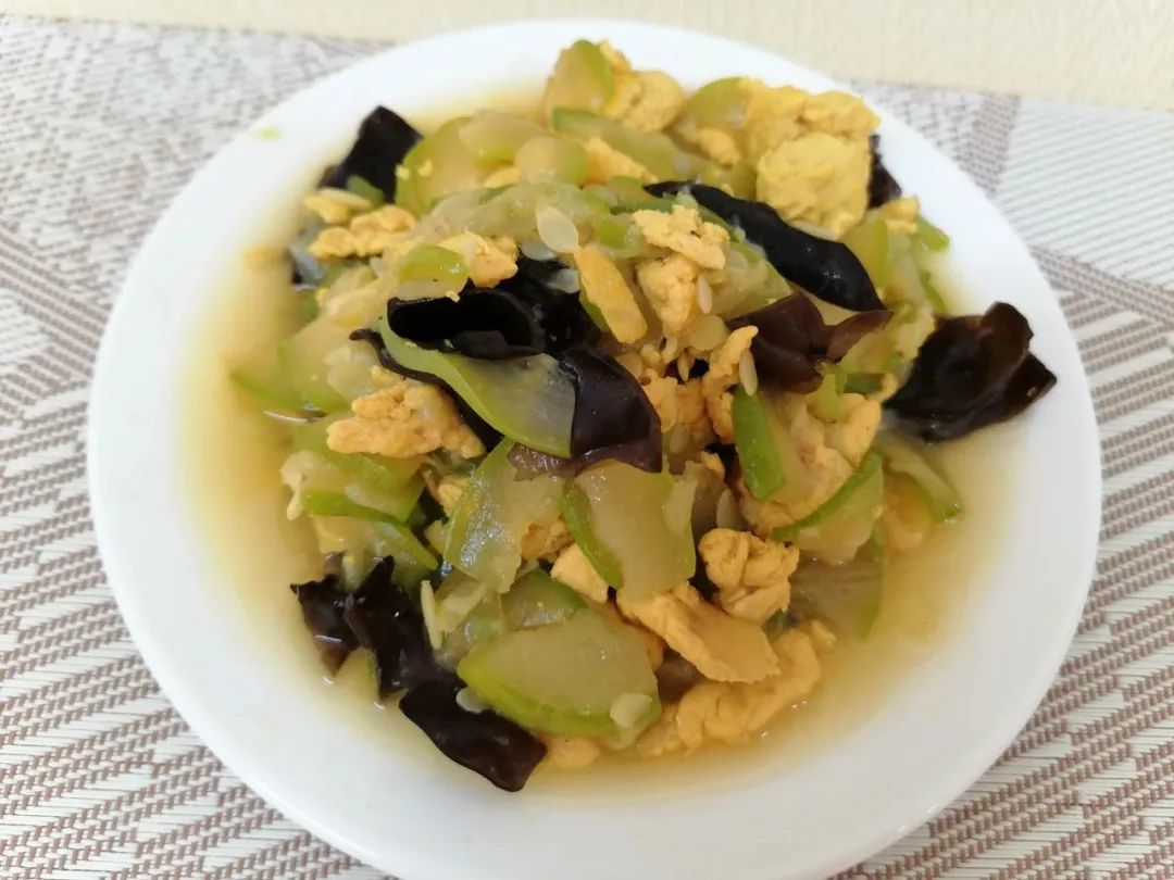 丝瓜炒鸡蛋:丝瓜 鸡蛋 木耳