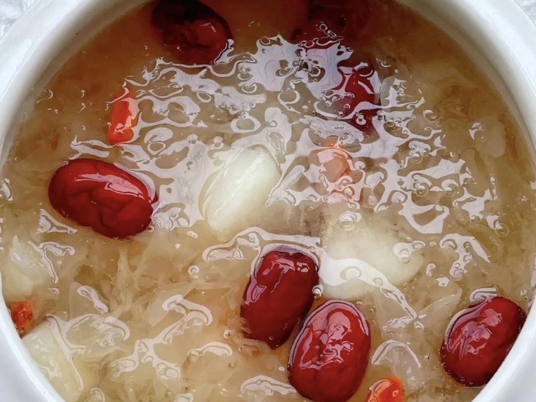 雪梨红枣银耳粥:香米 雪梨 红 银耳