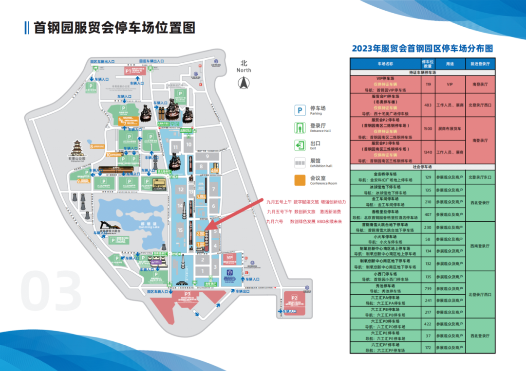 导航新首钢会展中心,附近多个社会停车场。停车场位置分散且停车位有限,请仔细阅读首钢园服贸会停车场位置图停车,选择最近登录口入园。