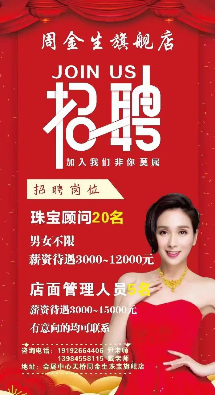 威宁会展中心周金生珠宝旗舰店招聘25人!薪资待遇3000-15000