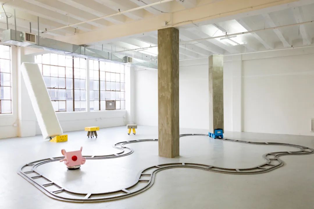 向惠迪,《芝士柱子》,2019,在地可动装置。图片致谢艺术家