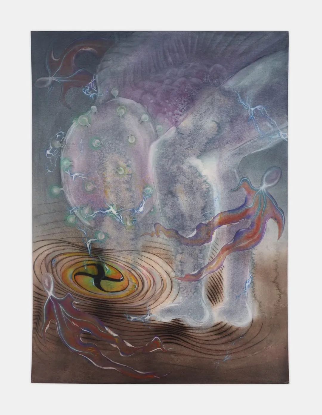 钱倩,《Zeta衰变》,2023,收藏级纸板水彩,铅笔和丙烯,76 cm x 56 cm。图片致谢艺术家