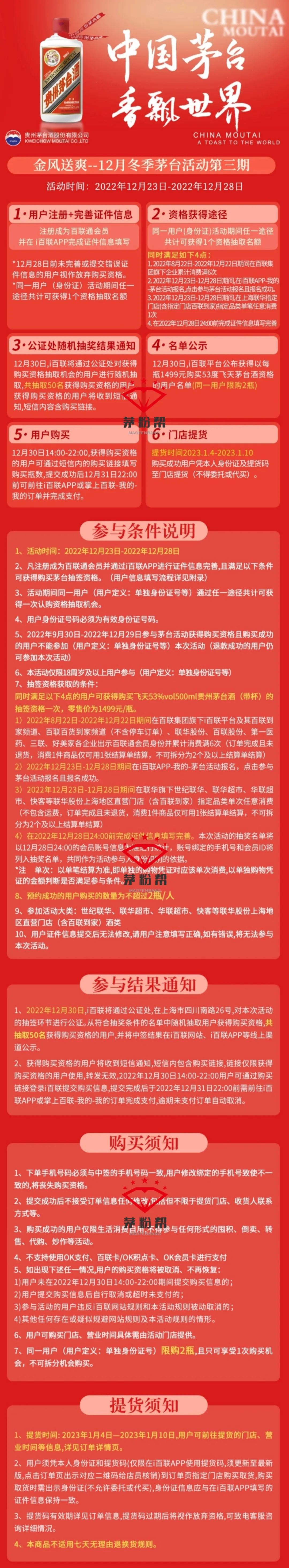 ​茅台预约丨百联12月第三期茅台预约抽签活动!!