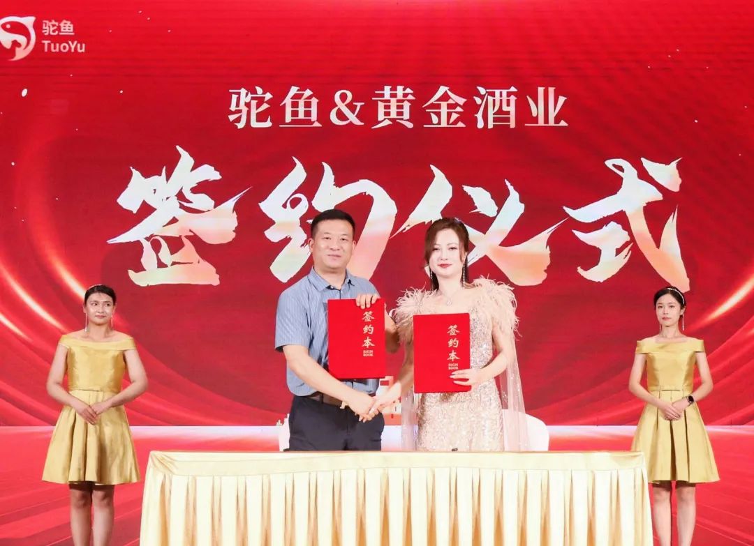 值得一提的是,此次双方携手合作,除了双方品牌资源的强效对接,黄金酱酒与企叮咚驼鱼还共同打造了一款令人期待的新品——黄金老坛酒。这款新品将保持黄金酱酒独特的酿造工艺与口感特点,同时也将融入企叮咚驼鱼的创新元素,将满足不同的消费需求,为消费者带来品质新选择。