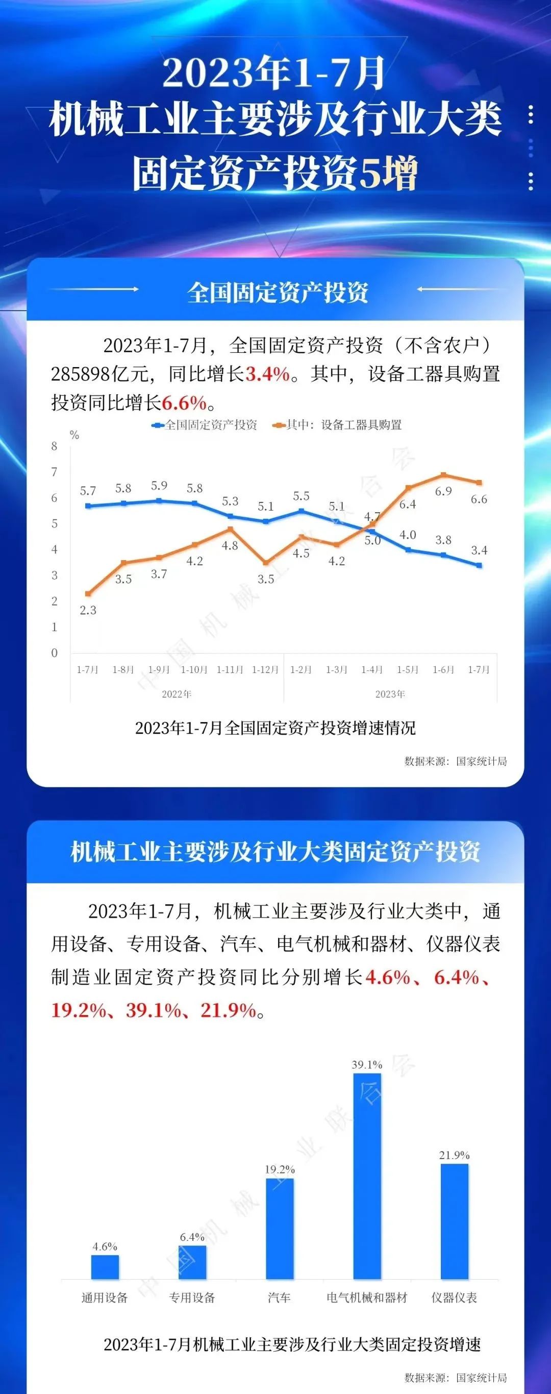 1-7月机械工业主要涉及行业大类固定资产投资5增