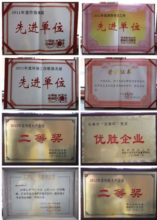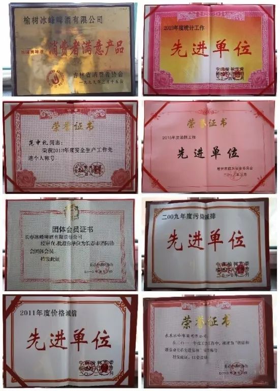 冰峰啤酒厂的产品曾荣获吉林省“名牌农产品”,“质量信得过啤酒”,长春市“消费者满意产品”;被评为吉林省“信得过啤酒”、长春市“消费者满意产品”、吉林省及长春市的“著名商标”。而冰峰啤酒厂也多次被评为吉林省及长春市“守合同重信用单位”、榆树市“纳税大户”、榆树市“污染减排环境治理工作先进企业”等。