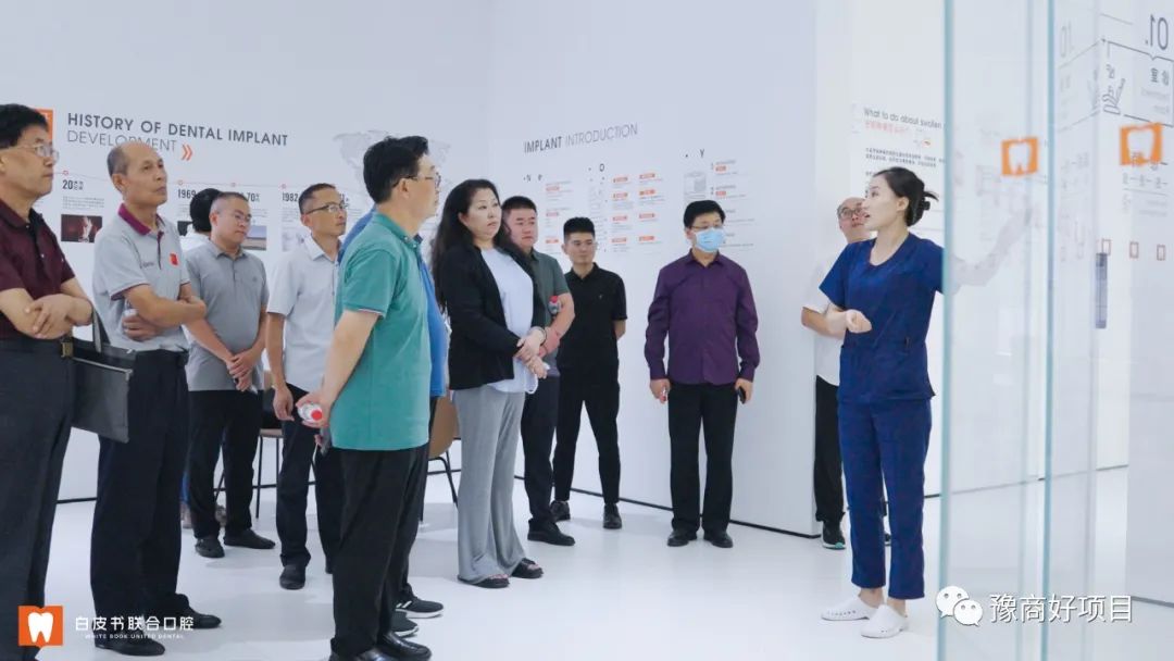 中国酒类流通协会熊玉亮副会长、河南省茶叶协会洪克森会长、河南省塑料协会段同生会长、河南省健康产业联盟理事会黄桦会长、河南省建设文化协会黄海会长、河南省标识行业协会王鹏会长、河南省连锁经营协会胡守明书记、河南省锁具协会胡静安秘书长、河南省旅游文化研究会冯雪兰秘书长、郑州市美容业商会冯建云会长、郑州市食文化研究会张伟会长等各行业商协会会长、秘书长、书记及企业家一行30余人,一起走进白皮书联合口腔医院参观、交流、互动、体验、助力。