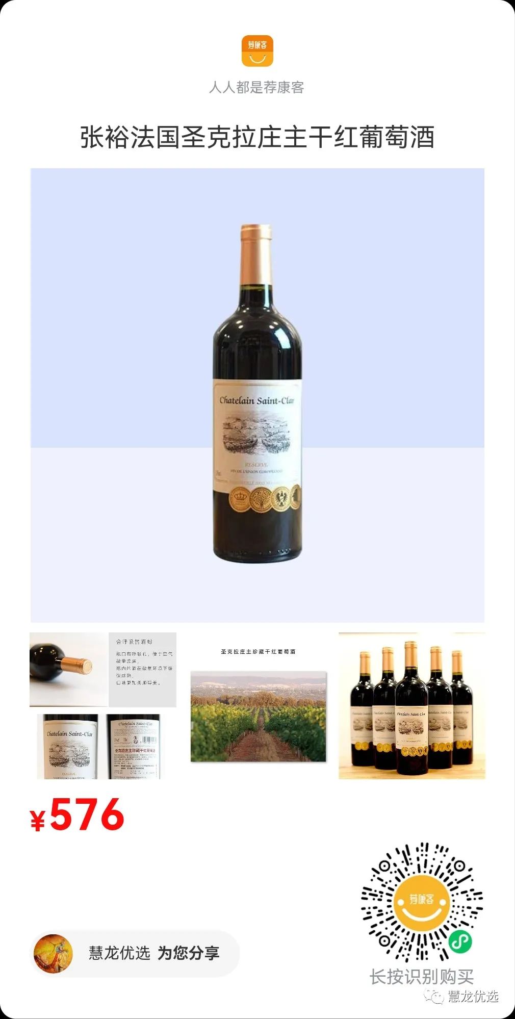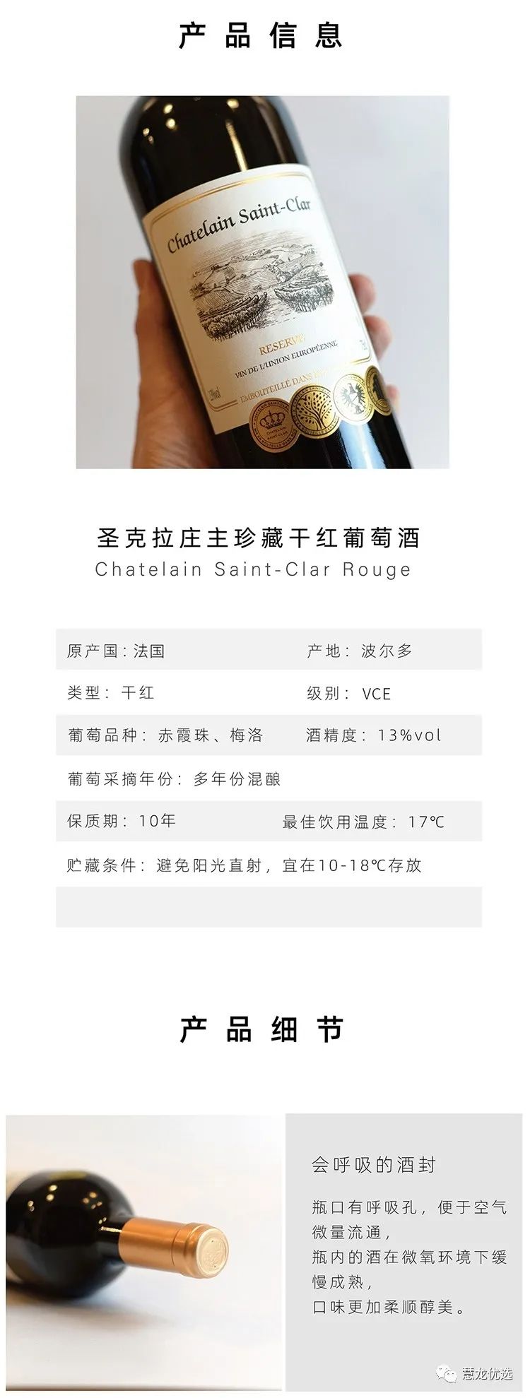 张裕法国圣克拉庄主干红葡萄酒