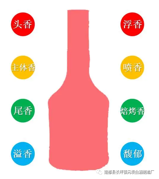 3、尾香——香气结构的一部分。亦称基香或底香。指产品的后段香气即头香和体香挥发后,留下的香气。由高沸点挥发性物质所致,是维系香气稳定持久的主要物质载体。(通过嗅闻空杯香气长短和舒适刺激度及香气质量可大致判定酒体之质量,也可判定产品中使用的带酒之质量)