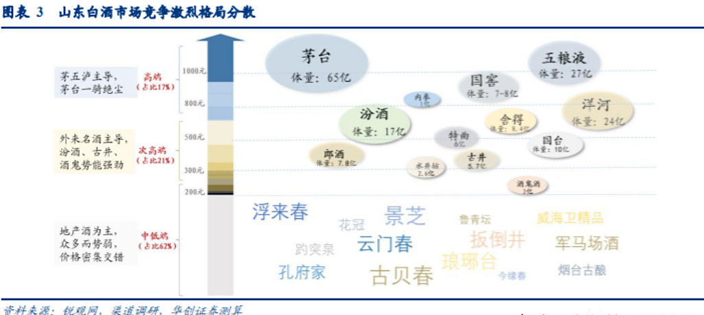 据业内人士估算,山东省白酒市场的消费金额高达600亿,位居全国第一。然而,令人尴尬的是,目前山东的市场份额已从600亿下滑至450亿。