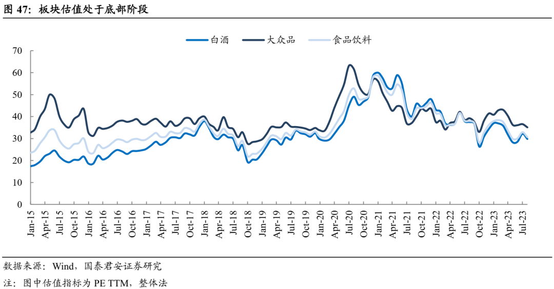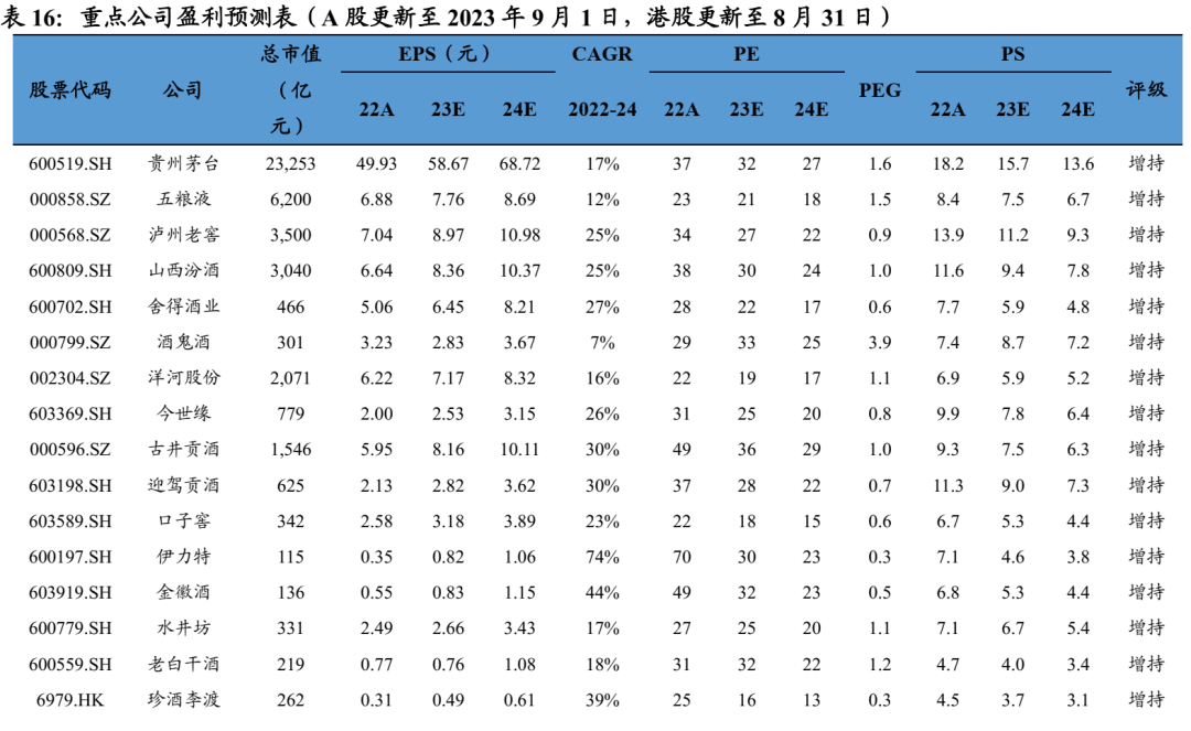 投资建议:1)白酒:首选低估值及确定性标的,建议增持高端龙头:贵州茅台、五粮液、泸州老窖;地产酒首选低估值:迎驾贡酒、今世缘、金徽酒、古井贡酒、洋河股份等;逐步布局次高端标的,建议增持:山西汾酒、水井坊、舍得酒业、老白干酒、酒鬼酒等。2)啤酒及大众品:首选啤酒及低估值大众品,建议增持:青岛啤酒、燕京啤酒、百润股份,港股:华润啤酒;低估值标的建议增持:绝味食品、洽洽食品、承德露露、李子园、伊利股份等,受益标的:天润乳业、新乳业等;中期重点布局成长性子行业餐饮供应链,建议增持:千禾味业、宝立食品、千味央厨、安井食品、味知香等。