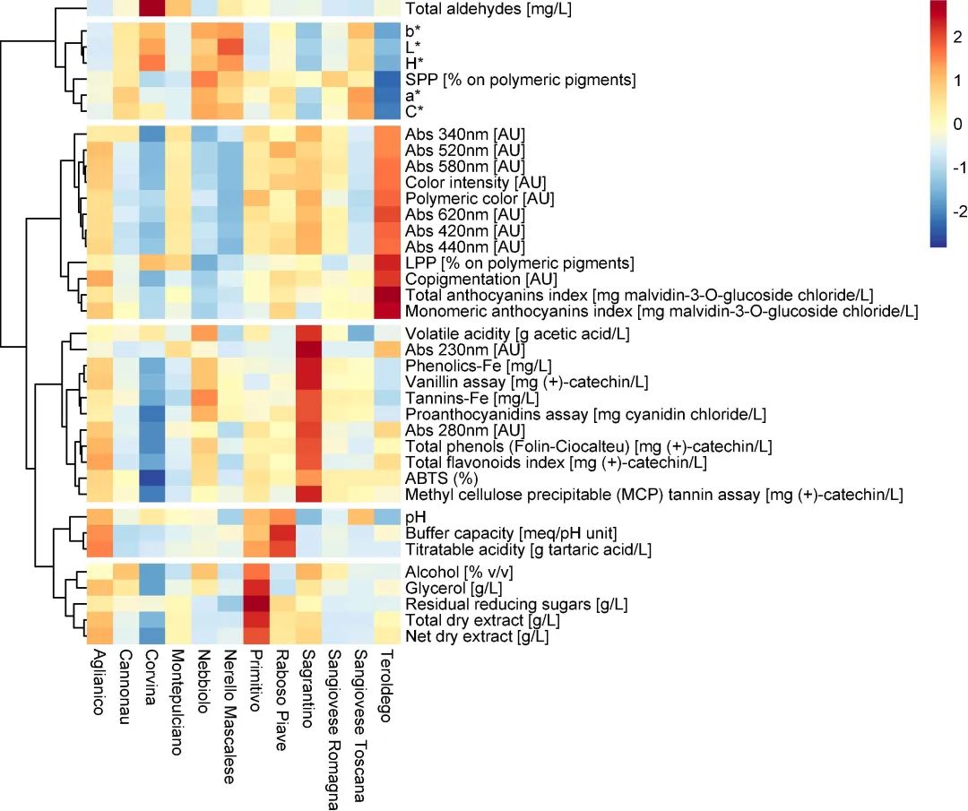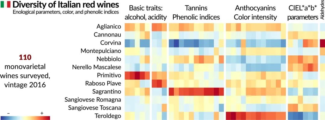 意大利红葡萄酒的多样性:按酿酒参数、颜色和酚类指数进行的研究