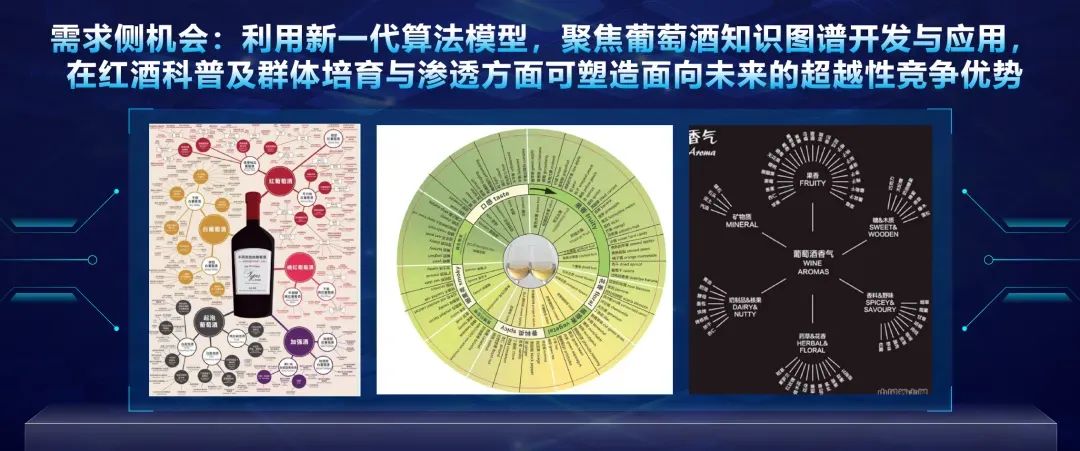 其次,从葡萄酒行业需求侧来说,年轻一代所需要的服务方式以及他们对产品的选择和评价方式都发生了改变,新场景、新体验等多维度供行业挖掘其真需求。同时,将来的葡萄酒市场,需要更好地借助知识型电商平台来满足年轻一代对葡萄酒知识的高需求。利用新一代算法模型聚焦葡萄酒知识图谱开发与应用,以塑造未来行业的超越性竞争优势。