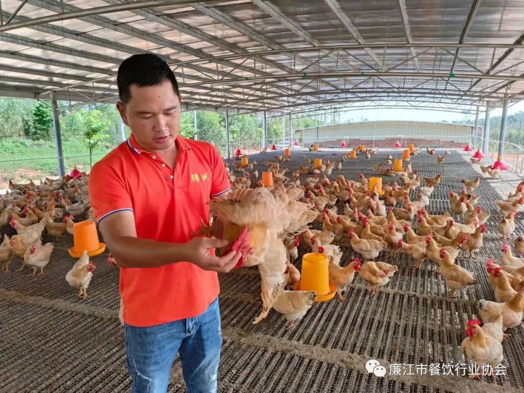 石岭镇湛江鸡养殖户钟其锦说我们这个湛江鸡在市委市政府的高度重视下,还有华南农业大学的技术指导下,我现在的规模是这个月已达到四、五万只,还有我们的第一批大鸡即将可以出栏,这批鸡已被廉江和湛江的餐饮酒店,还有很多外地的酒店基本上订购完了。我们下一步的发展,下个月开始,准备每个月进苗差不多十万只,争取可以达到年产值一百万只,总产值超过一个亿。