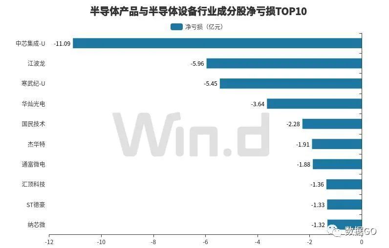 从净亏损来看,1家公司净亏损超10亿元,中芯集成-U、江波龙、寒武纪-U排名居前,2023年上半年净亏损金额分别为11.09亿元、5.96亿元、5.45亿元。