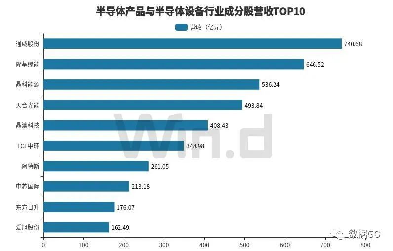 从成分股表现来看,129家盈利,43家亏损。13家公司营收超100亿元,通威股份、隆基绿能、晶科能源营收居前,分别为740.68亿元、646.52亿元、536.24亿元。
