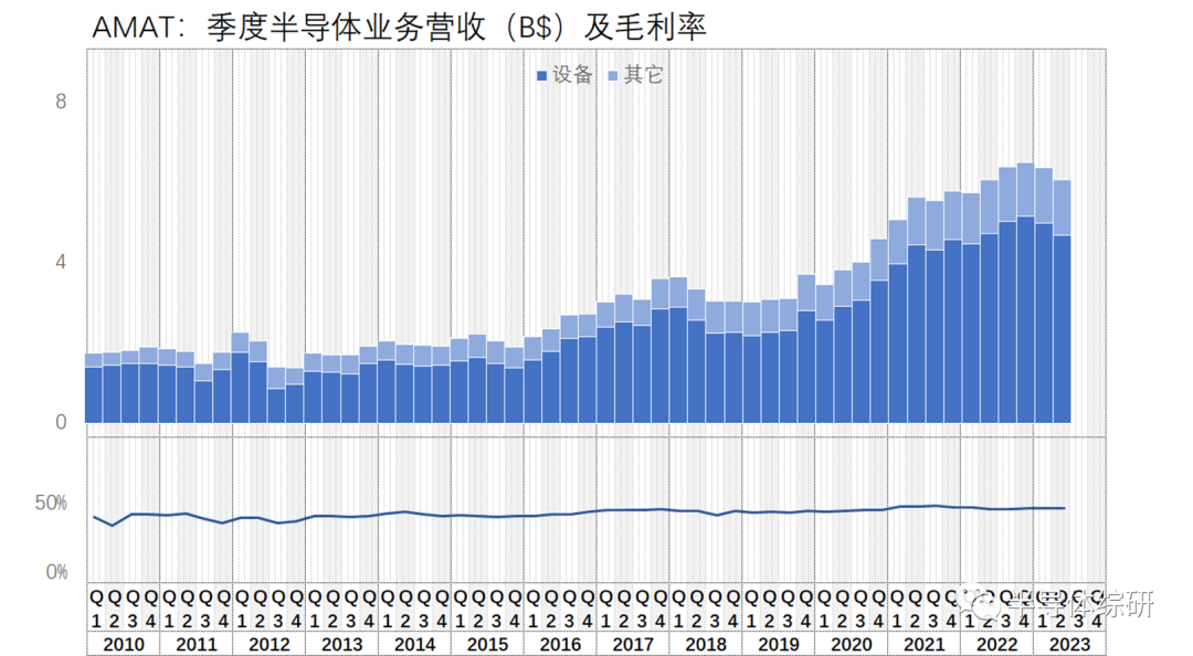 作为顶尖的头部企业,AMAT的营收下滑目前还算平缓