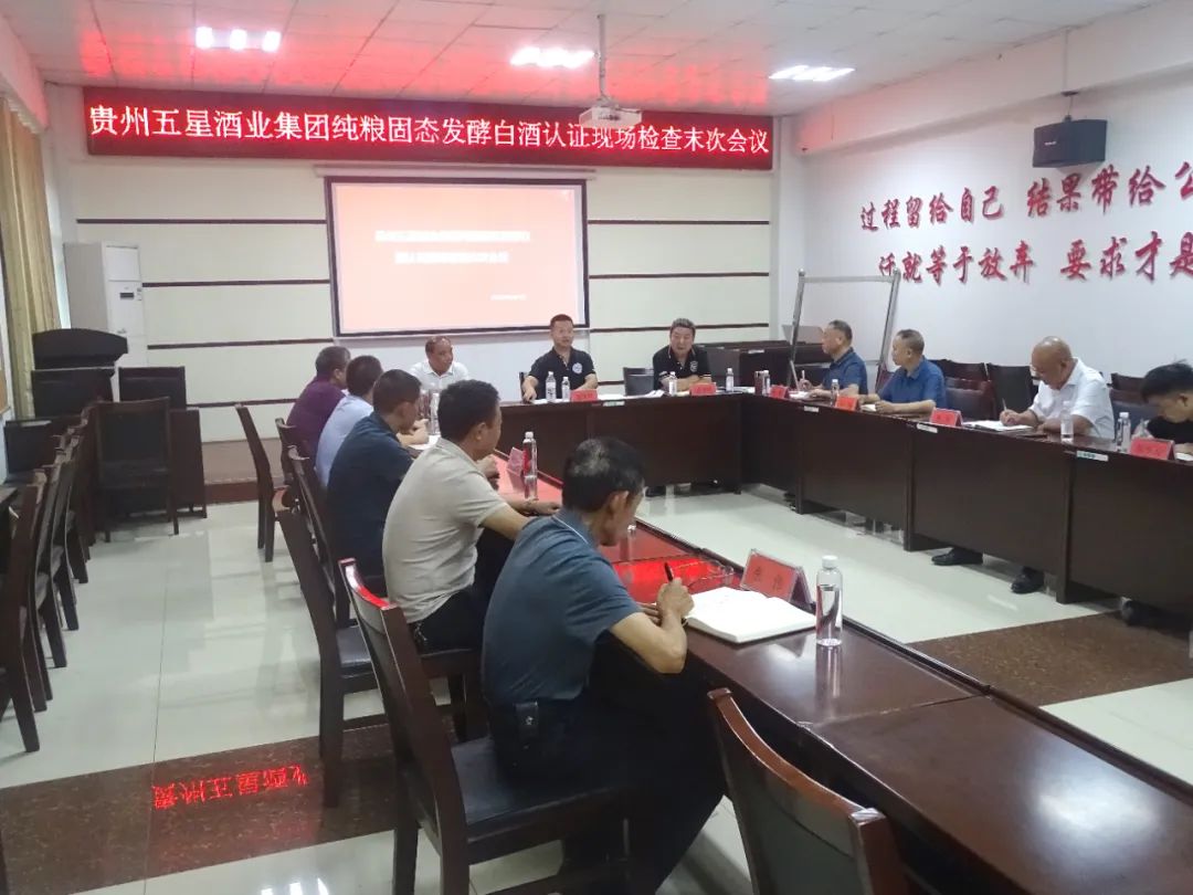 该项认证由权威机构中检科创颁布,测试认证有限责任公司的程科科、张金修、许育民专家老师对我厂现场进行审核,经过现场检查,专家组认为五星酒业的原辅料、制曲酿酒工艺、原酒储存管理、产品品质等各方面情况均满足纯粮固态发酵白酒认证要求,肯定了五星酒业符合高品质特征的纯粮固态白酒认证条件,专家组一致同意五星酒业通过“纯粮固态发酵白酒认证”现场检查。