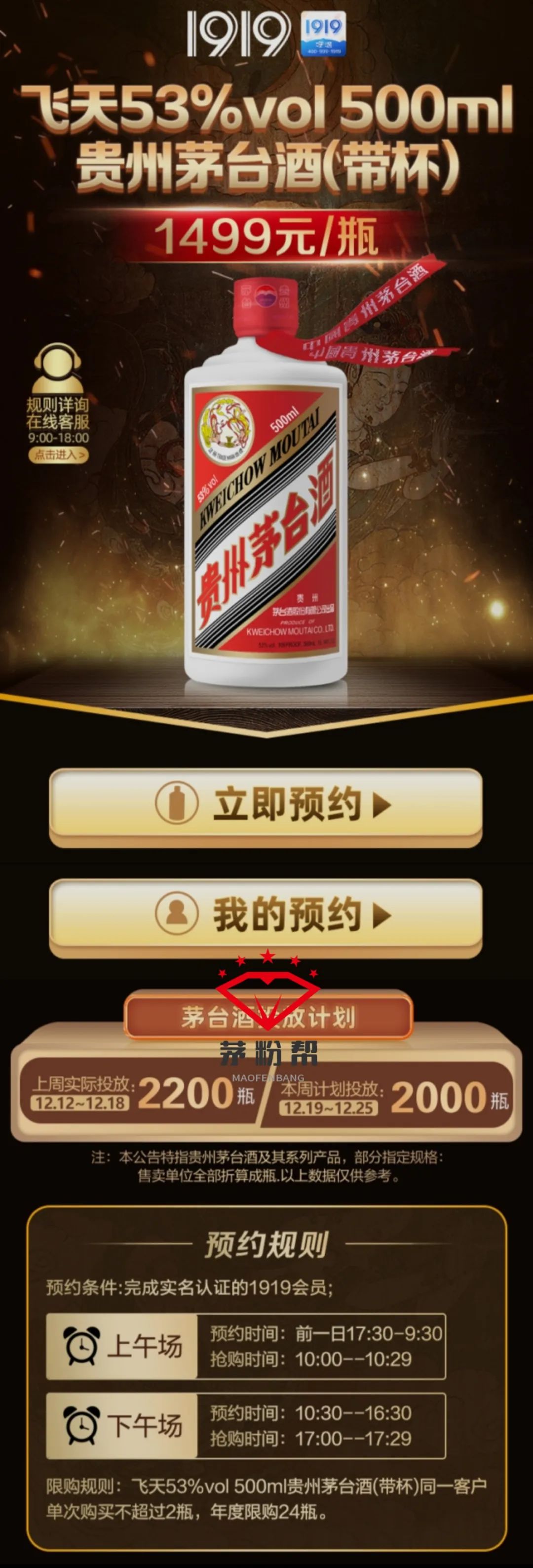 ​茅台预约丨1499茅台本周投放2000瓶,年限购24瓶!!