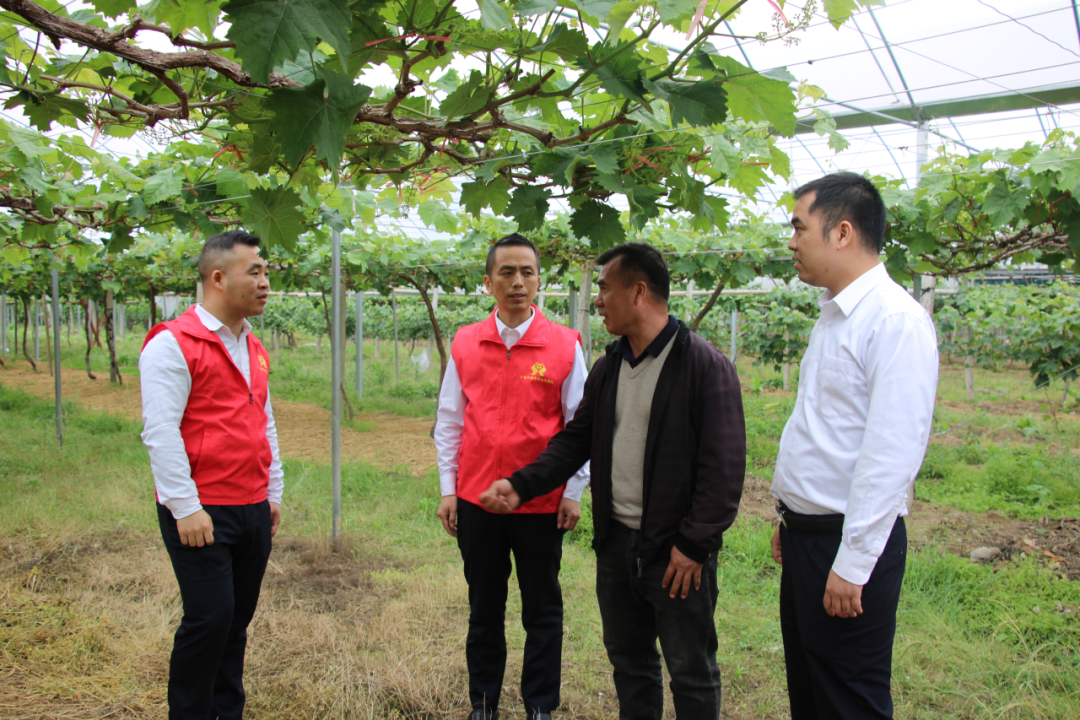 兴安农合行溶江支行工作人员深入农户葡萄园了解经营情况。