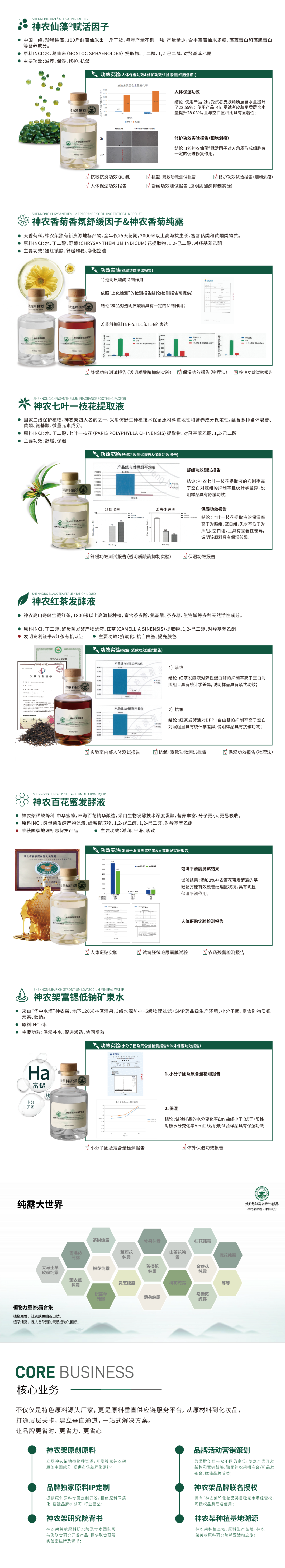 神农架天然美妆原料研究院致力于中国珍稀物种化妆品原料开发及应用推广,提倡用植物的力量呵护肌肤,遵循国际《生物多样性公约》,在中国特色珍稀物种美妆原料的市场研究和分析基础上,合理开发利用神农架自然资源;展开神农架特色珍稀美妆原材料探索研究、原材料生态种植研究、原料提取技术研究、原料研发测试研究、原料功效应用研究以及产学研项目等。建立垂直供应链平台,提供神农架原创原料、原料深度溯源、爆品ODM等服务,让品牌更省时、更省力、更省心。
