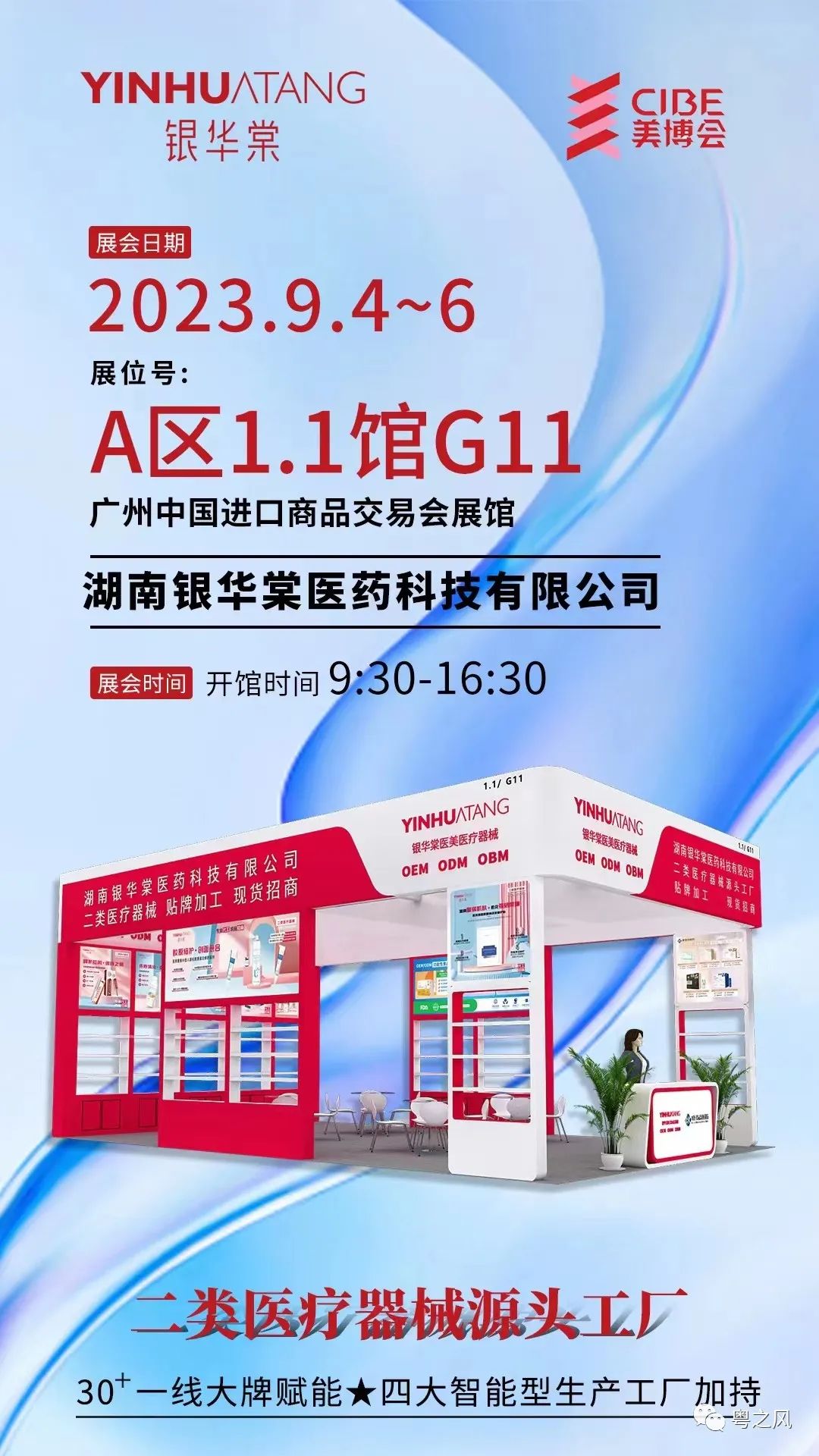 真诚恭候您来参加2023年第62届中国(广州)国际美容博览会,时间:2023年9月4日-6日,地点:广州市海珠区阅江中路380-382号,银华棠公司将在A区1.1馆G11 展位,展出创新新品。