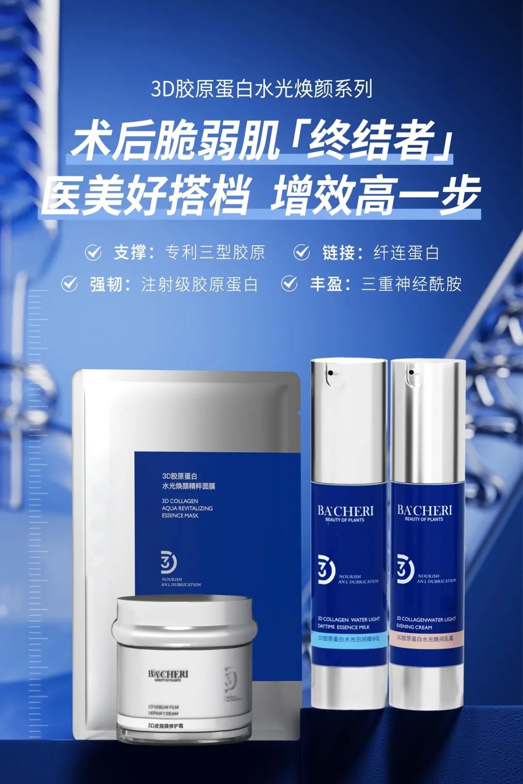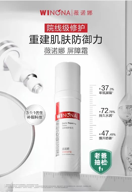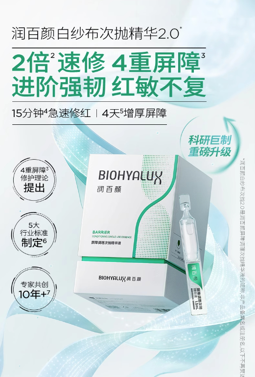 ①牡丹奢养稚粉焕白系列,以花御龄,添加嗜热栖热菌发酵产物实现外源抗光损,打响御氧三重奏。②东方茵韵茶醺系列,以白茶嫩芽中提取的EGCG为抗氧核心,抵御蓝光及氧化损伤。③美伴早P晚R次抛精华液,全新天然生物防晒理念,4种成分日间协同抵御光老化,减少自由基。随着医美的普及以及市场下沉,消费者对于医美的认知和接纳程度逐渐提升,而医美术后的皮肤屏障修复问题也成为了消费者关注的问题,由此催生出了对医美术后修护场景的产品使用需求。润百颜白纱布次抛,解决光电项目后皮肤紧绷不适,出游易敏、刷A翻车;可复美胶原棒,4重胶原蛋白协同作用,厚筑屏障,减轻泛红;薇诺娜屏障霜,针对特殊美容前后屏障受损,311仿生补脂科技,加速屏障修护。