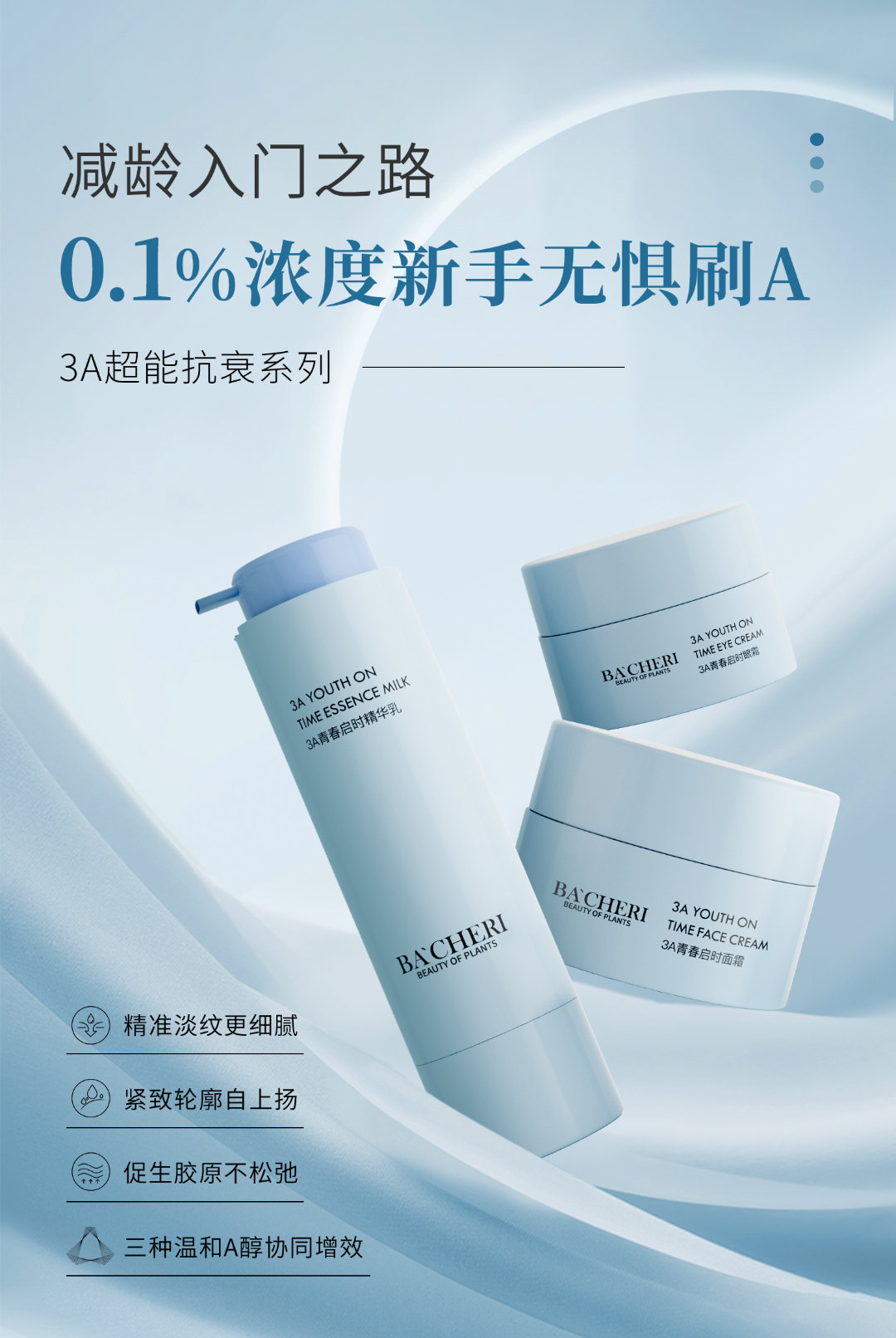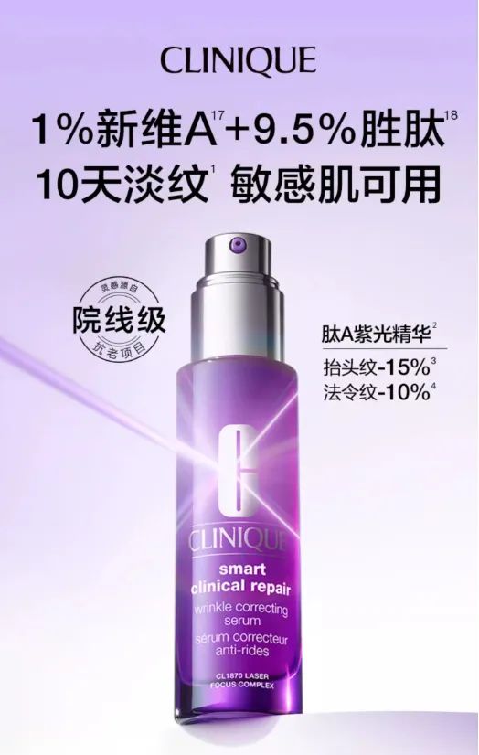 ①3D胶原蛋白水光系列:医美好搭档,增效高一步,解决项目后产生的副作用红肿、脱皮、泛红。②三文鱼赋活紧致系列:构筑“3+1”反重力胶原体系,驱动年轻力量,助力特殊美容项目后的皮肤修护。③冻干粉系列:满足医美项目修护期,换季脆弱,熬夜后等特殊场景的护肤需求。据《抗衰护肤市场趋势报告》推算,2023年中国护肤抗衰市场规模将达1400亿元。作为抗老三巨头的A醇、胜肽、玻色因持续大火,从抖音今年618成分GMV表现来看,视黄醇增速最快,其GMV增长率指数达到1.06%。国内外品牌齐“出招”,一系列新品也反映出抗衰市场早已成为品牌的必争之地。赫莲娜黑绷带面霜,蕴含高达30%浓度玻色因,加速胶原蛋白、粘多糖生成,改善衰老皮肤;露得清A醇晚霜,入门级维A醇产品,抗皱、抗衰、抗氧化;倩碧肽A紫光瓶,「维A衍生物HPR+复配4重胜肽」 ,全链路抗老淡纹。