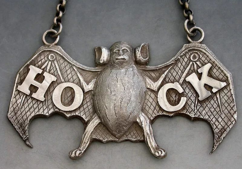 1880年左右的蝙蝠形状酒标,英国人把德国白葡萄酒称为Hock