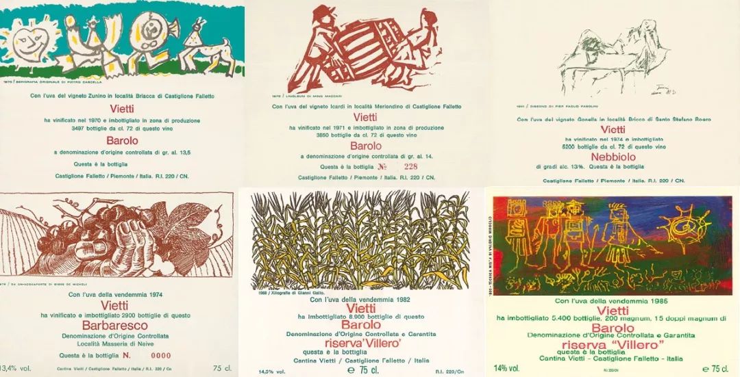 酒庄老庄主阿尔弗雷多·库拉德(Alfredo Currado)有一群艺术家老友,在爱酒爱艺术的氛围下,诞生了非常多的令人称颂的艺术酒标。