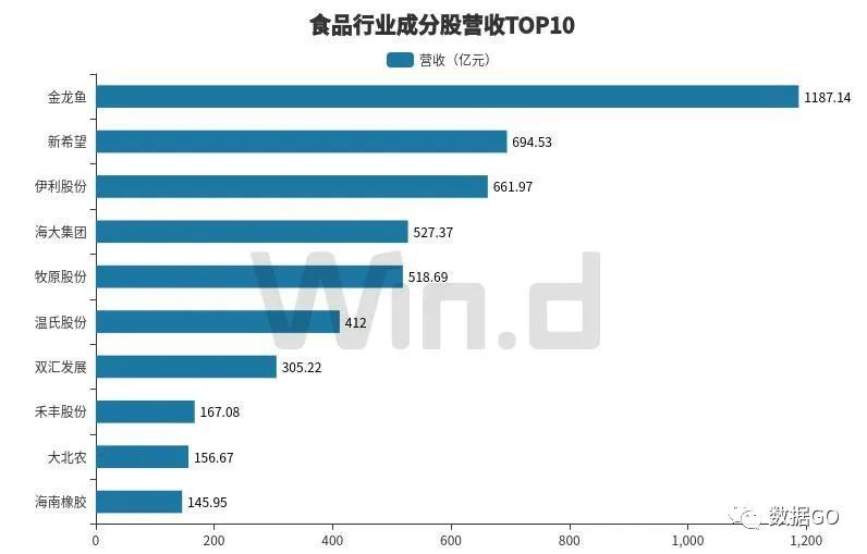 从成分股表现来看,143家盈利,37家亏损。18家公司营收超100亿元,金龙鱼、新希望、伊利股份营收居前,分别为1187.14亿元、694.53亿元、661.97亿元。