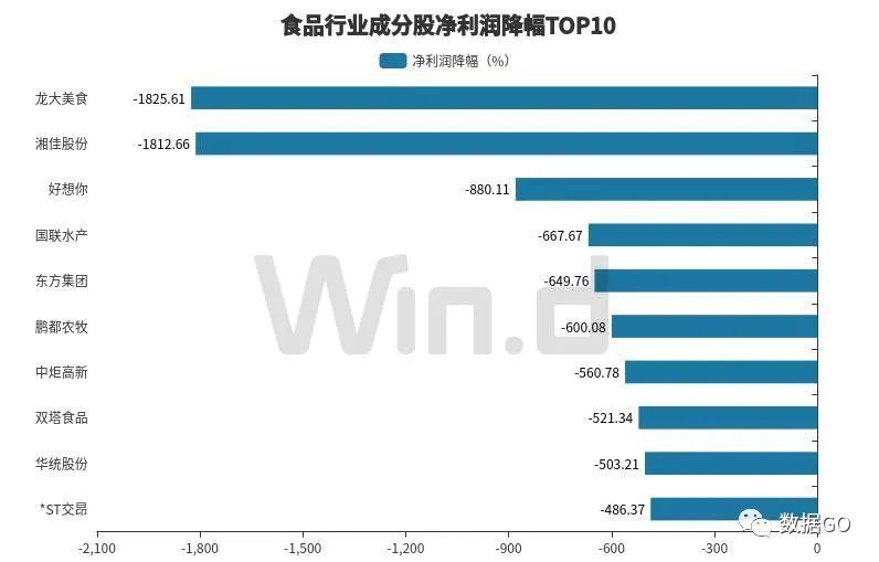 从净利润降幅来看,87家公司2023年上半年净利润同比下降,其中42家公司净利润降幅超50%,龙大美食、湘佳股份、好想你排名居前,净利润降幅分别为1825.61%、1812.66%、880.11%。