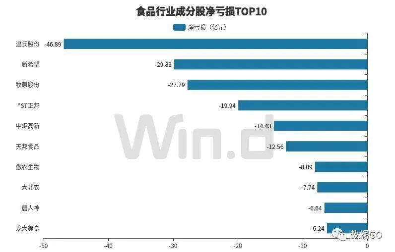 从净亏损来看,6家公司净亏损超10亿元,温氏股份、新希望、牧原股份排名居前,2023年上半年净亏损金额分别为46.89亿元、29.83亿元、27.79亿元。
