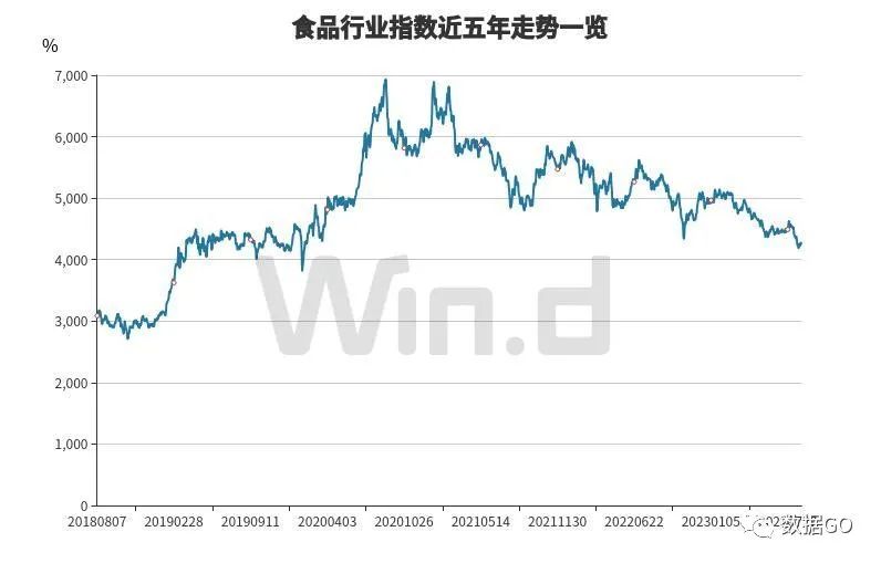 截至8月30日,食品指数报4252.43点,今年以来累计跌14.56%,成分股期末总市值为2.41万亿元,总流通市值为1.91万亿元。