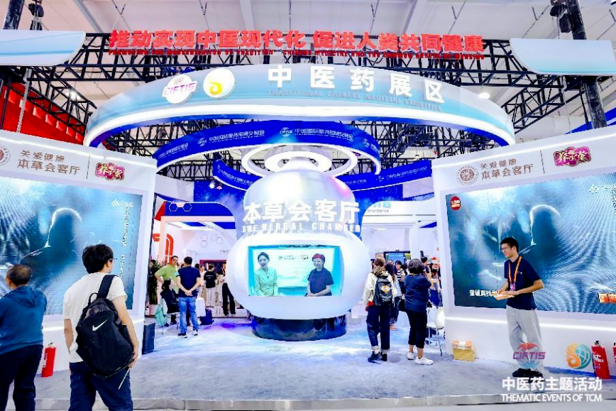 中医药主题系列活动打造专题展区,围绕“推动实现中医现代化,促进人类共同健康”核心主线,集聚产业优质资源,集成124家参展机构(线下36家+线上88家),面向全球集中展现中医药高质量发展新格局。参展机构包括中国中医科学院、南京中医药大学、北京中医药大学等科研院所及高校,北京同仁堂、九芝堂、东阿阿胶等老字号、头部企业。各大参展机构聚集优势,呈现七大板块,分别为中医药高质量发展新成果、中医药数字服贸新突破、中医药传承创新新跨越、中医药品牌矩阵新篇章、中医药一带一路新动能、中医药民族融合新风采、中医药直播新引擎,各区域形成合力,共同展现中医药健康服务、传承创新、产业促进和现代化高质量发展。