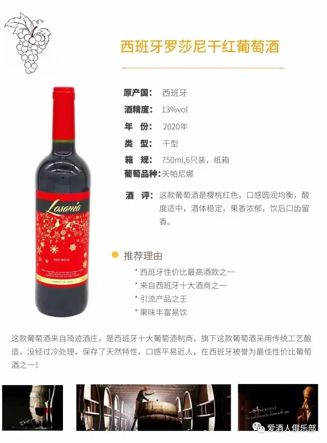 西班牙产罗莎尼婚宴系列干红葡萄酒 酒精度:13%VOL