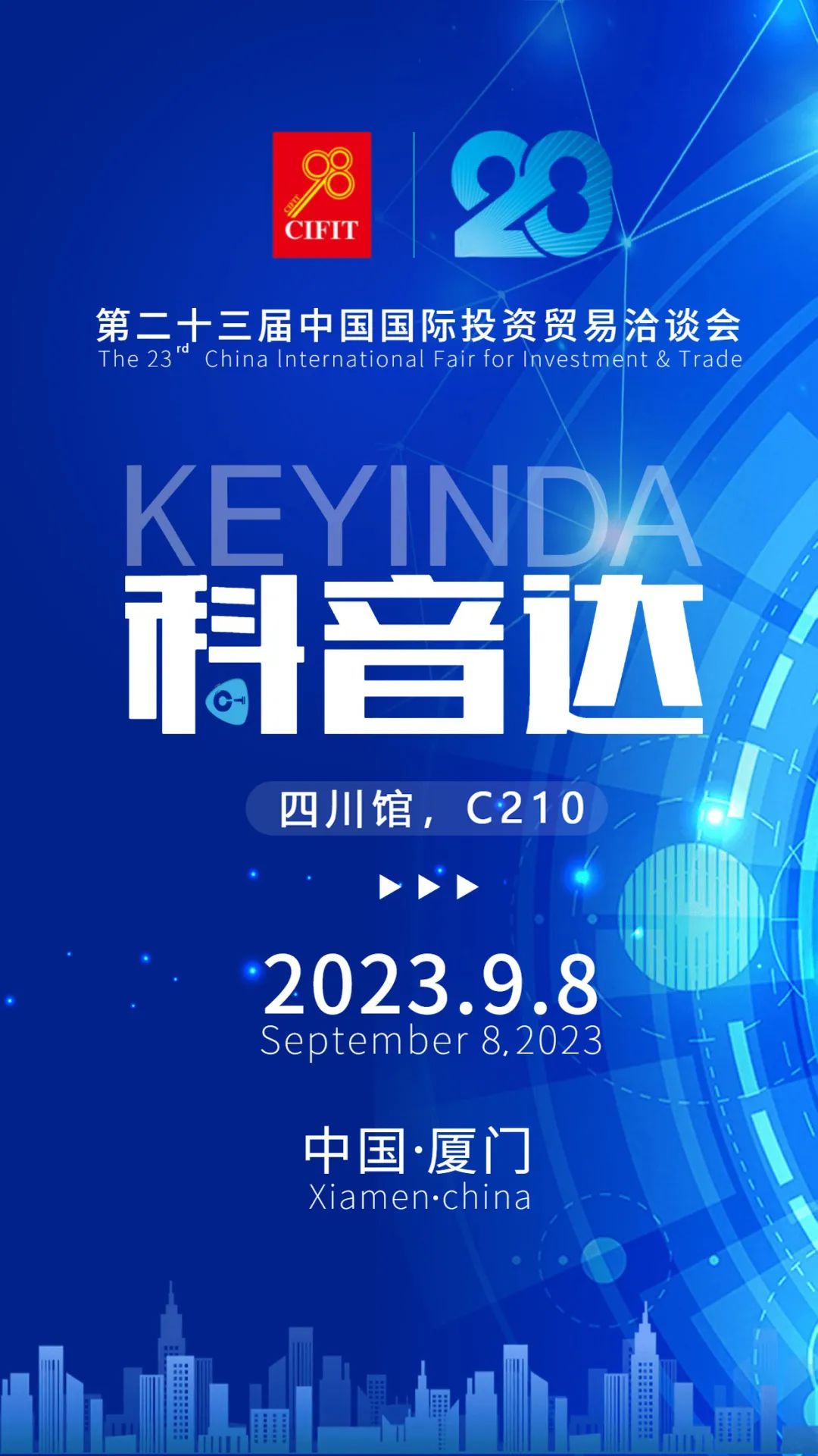 第二十三届中国国际投资贸易洽谈会将于2023年9月8日至11日,在中国福建厦门举办。致力于打造权威信息发布、双向投资促进、投资趋势研讨三大平台,是全球最具影响力的国际投资盛会之一。