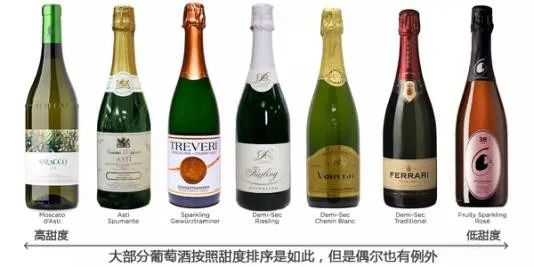 比如,尽管糖分其实一样高,一款半甜型的香槟(通常是由霞多丽和黑皮诺酿成)就不如那些半甜型的麝香气泡酒闻起来或喝起来甜,这和酿造工艺以及葡萄品种的选择都有关系。