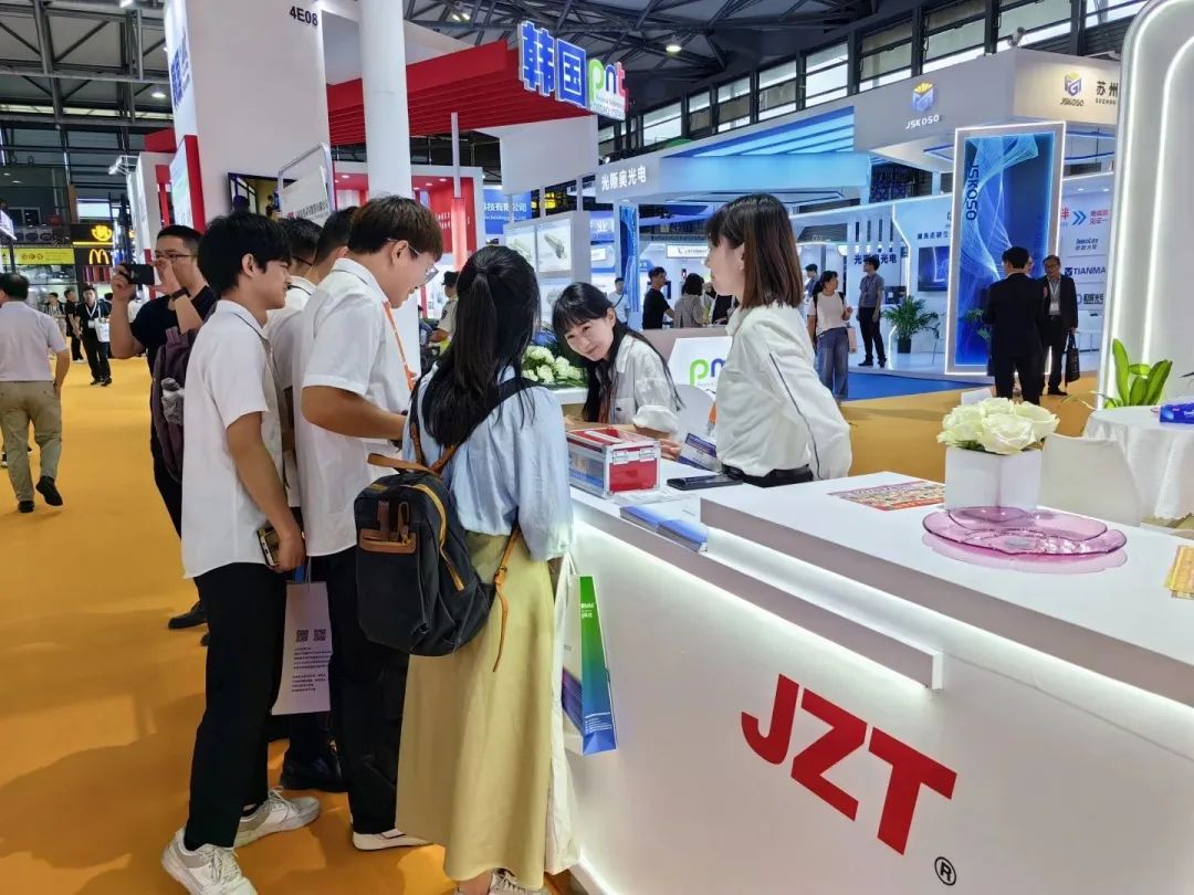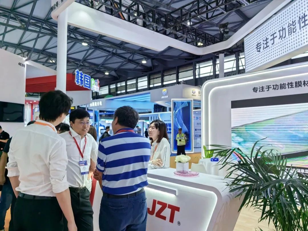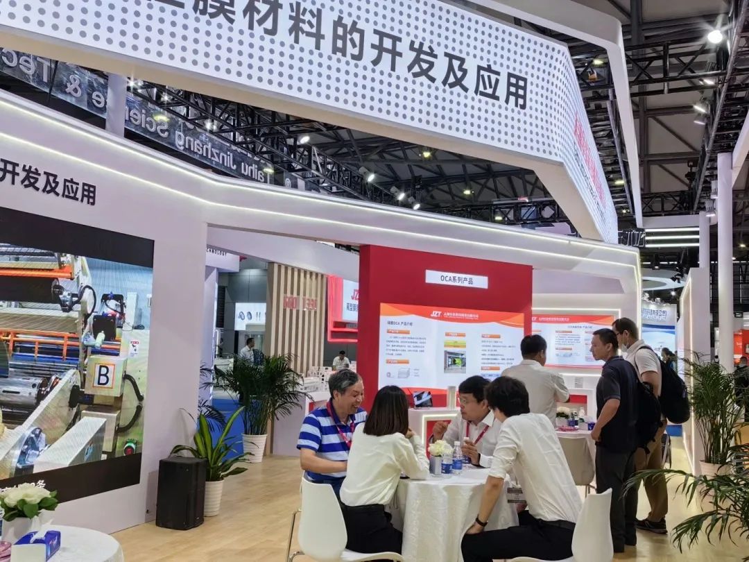 金张科技展出的OLED上下保护膜、OLED硅凝胶、OLED支撑膜、偏光板离型膜、OCA用离型膜、硅胶OCA、亚克力OCA、偏光板保护膜、防静电保护膜等多项产品亮相展会,获得了上下游相关企业代表和诸多专业观众的关注。