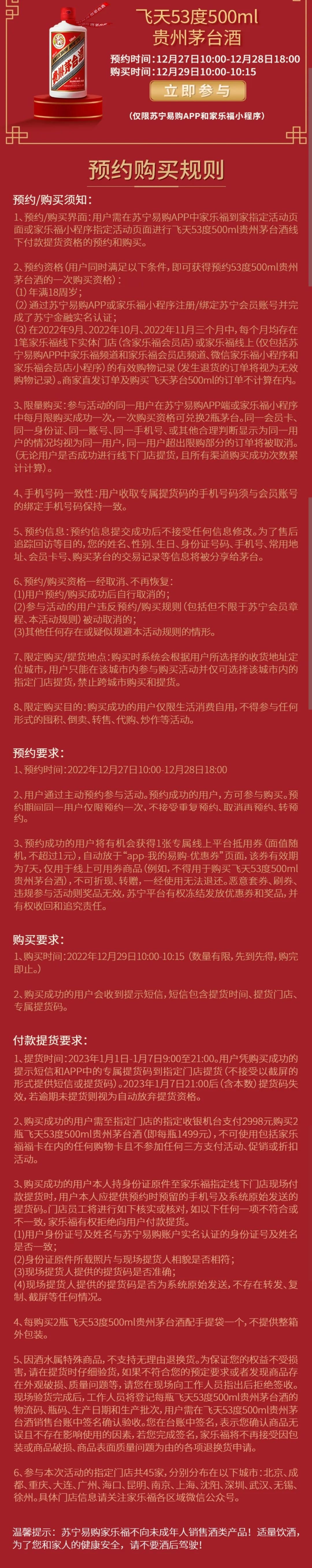 茅台预约丨家乐福茅台预约开启、投放2520瓶!!