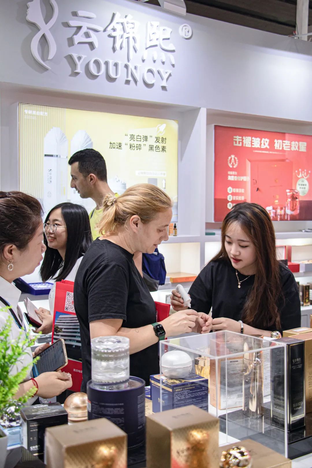 云锦熙展馆正在如火如荼举行,本次展会王牌展品是首次亮相的科技温感变色面霜,其次最为吸精的产品以美白为主导的功效产品三证齐全的水乳霜美白套装,相继有复原淡纹面霜,纳米科技可溶性胶原片等等......