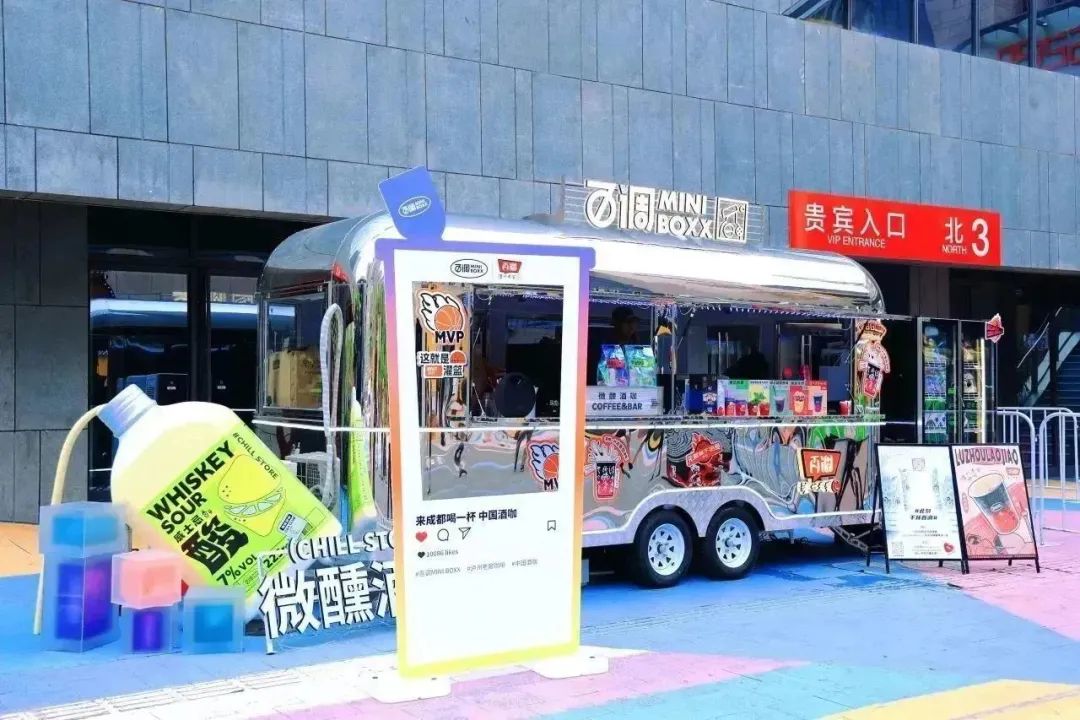 此次成都站,更是有百调MINIBOXX快闪车加盟比赛现场,为现场球迷带来吸睛十足的现调酒咖饮品。作为行业首个酒咖品牌,百调MINIBOXX潮酷风格已然突破了传统的白酒品牌形象,主打的“浓香型柠檬气泡水”“泸州老窖咖啡”等特色现调酒咖饮品,懒人调酒便利包等,吸引现场球迷和行人纷纷种草打卡,更有网红达人慕名而来。