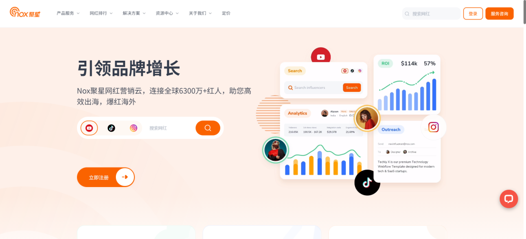 Nox聚星英文品牌名NoxInfluencer,是NOX集团倾力打造的海外网红营销云,为跨境出海品牌提供海外网红搜索、数据分析、任务管理、效果追踪、竞品数据分析与监控等海外网红营销数据与管理支持,帮助企业提升数据营销能力,实现有效增长。