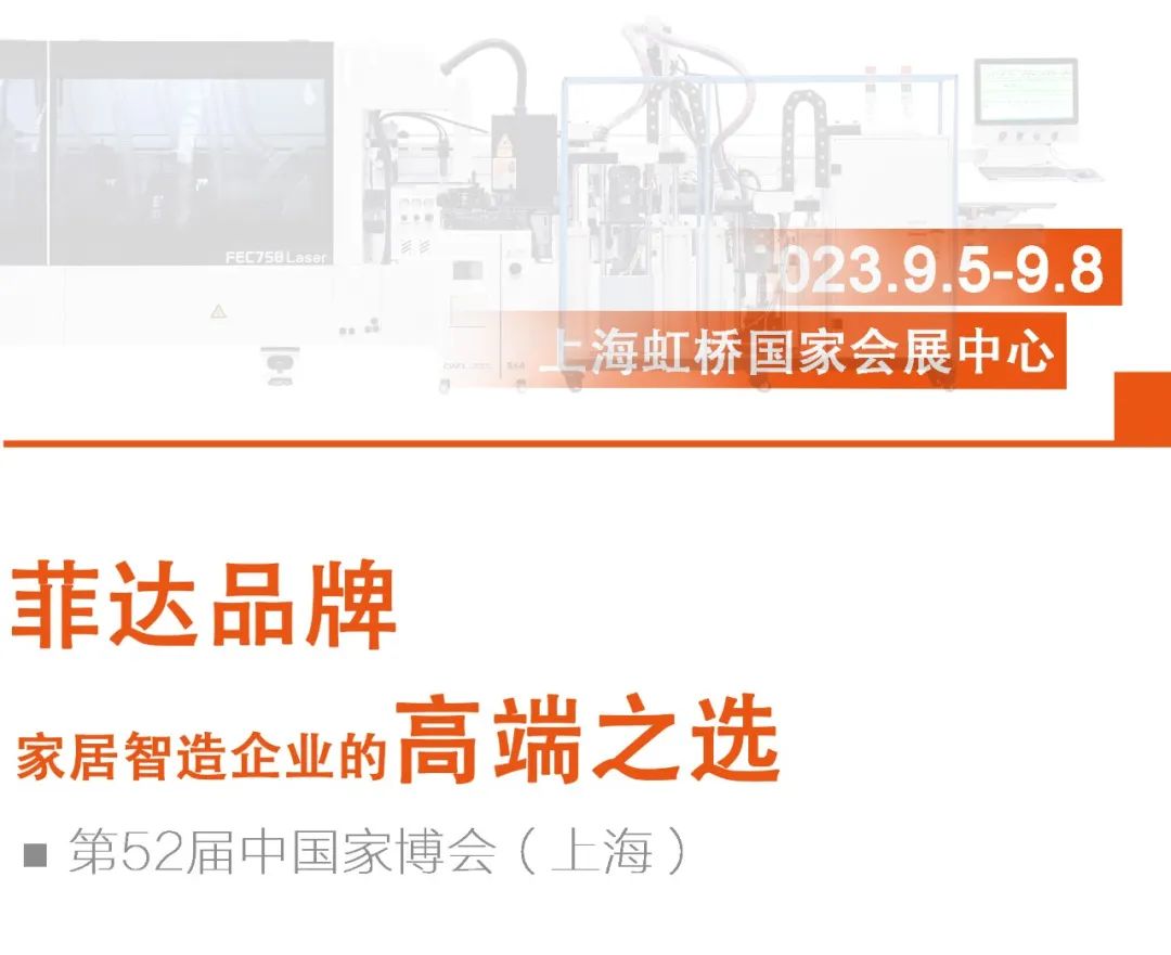菲达品牌专注于提升家居行业的智能制造水平,此次展会亮相的有:窄板激光封边机、铝木一体激光封边机、软成型封边机、六面数控钻孔中心、数控钻铣机,随着家居行业不断发展,对设备需求也日益增高,菲达始终保持匠心,以客户为核心,致力于成为更多家居智造企业的高端之选。