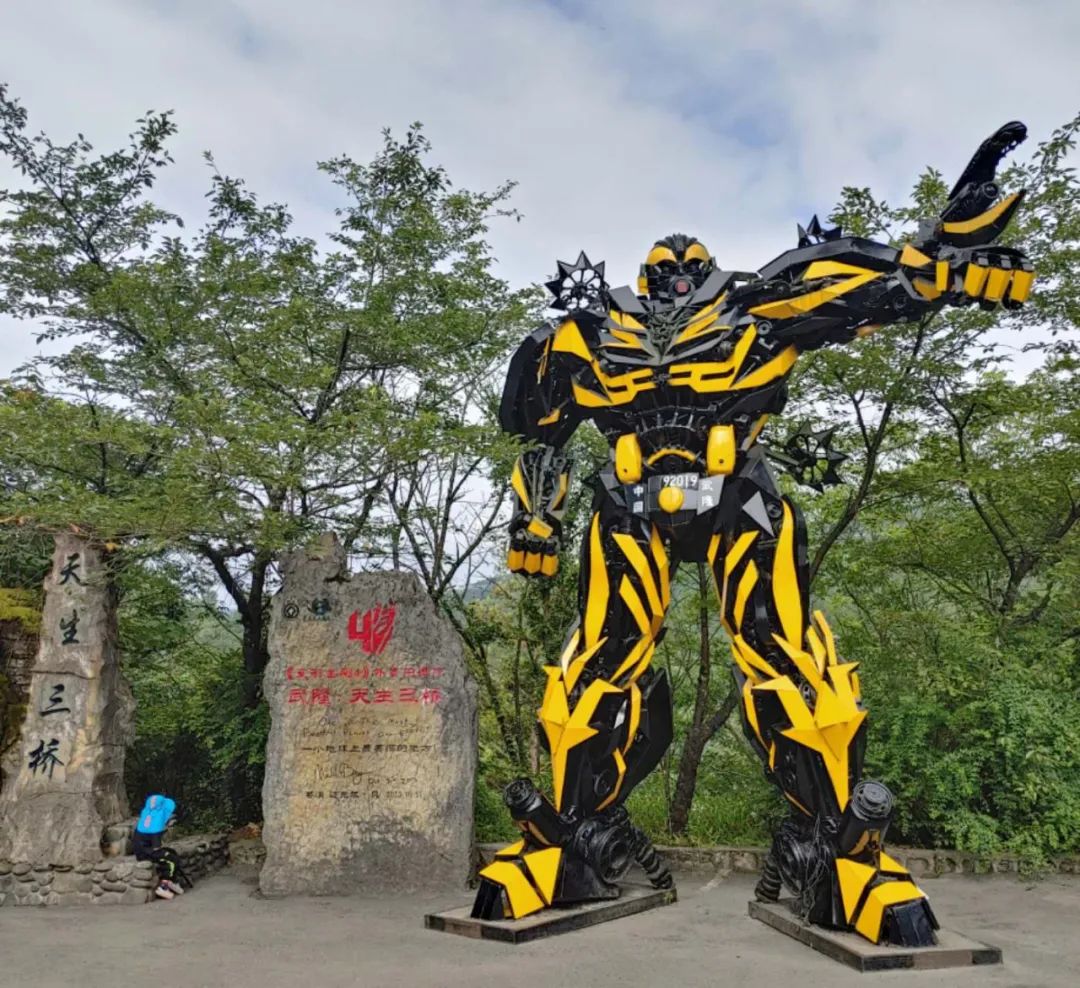 2014年《变形金刚4》也是在天生三桥取景,现在景区内还摆放了两台变形金刚的模型。