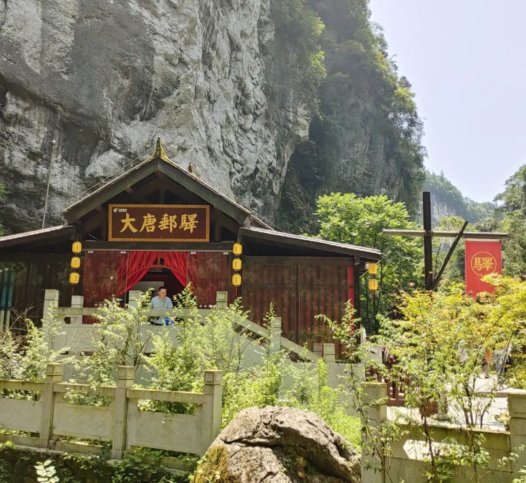 另外,还有一个“大唐邮驿”,也是《满城尽带黄金甲》中的一景,现在则是天生三桥旅游步行路线的终点站,有几个地方会有为游客免费拍照制作钥匙链的服务,当你走完旅游路线,来到这个大唐邮驿,就在这裡取件。