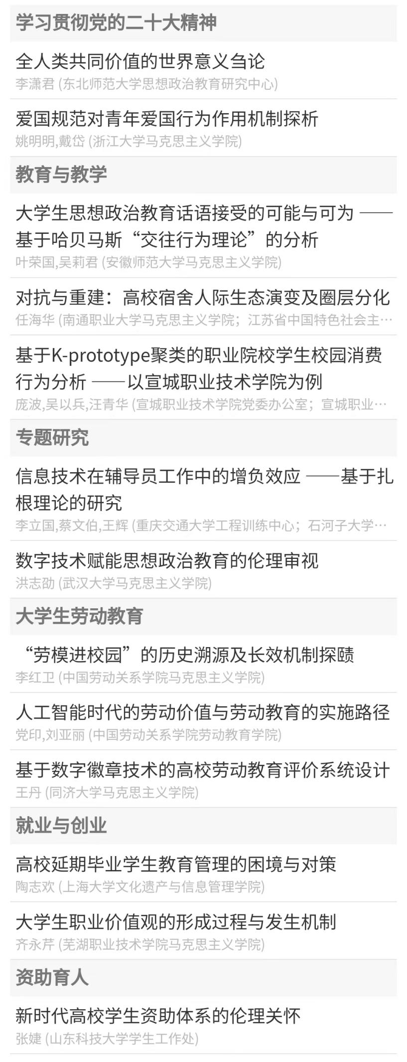 简介:《高校辅导员学刊》是由省教育厅主管、安徽师范大学主办的全国第一份公开发行的以高校辅导员为研究对象的专业性学术理论期刊。主要栏目设有:高端论坛、本刊专稿、学科与理论、教育与教学、学生管理、心理与交往、案例与调查、队伍建设、硕博论坛、文化人生、人物专访等。