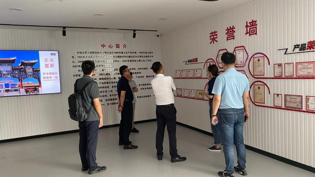 随后,天津恒佳集团来宾还参观了王朝公司的企业文化中心,通过刘军的介绍及照片、影像、文字等多元化的展现形式,从品牌故事、文化理念、历史沿革、科研成果、党群建设、社会责任、发展战略等方面全面了解了王朝公司的奋斗历程和辉煌成就。大家纷纷在展览墙前驻足,感慨之情溢于言表。