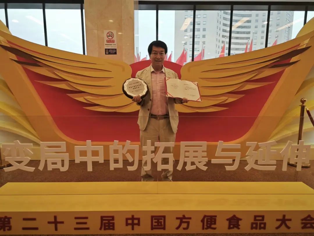光友薯业特获2022年-2023年度中国方便食品行业创新产品,奖牌和获奖证书由中国食品产教融合共同体副理事长、中国食品科学技术学会理事、绵阳市商务协会副会长、绵阳市食品产业协会副会长、方便粉丝方便米粉发明人、方便粉丝专家、教授级高工、光友薯业爱心集团董事长邹光友领取。