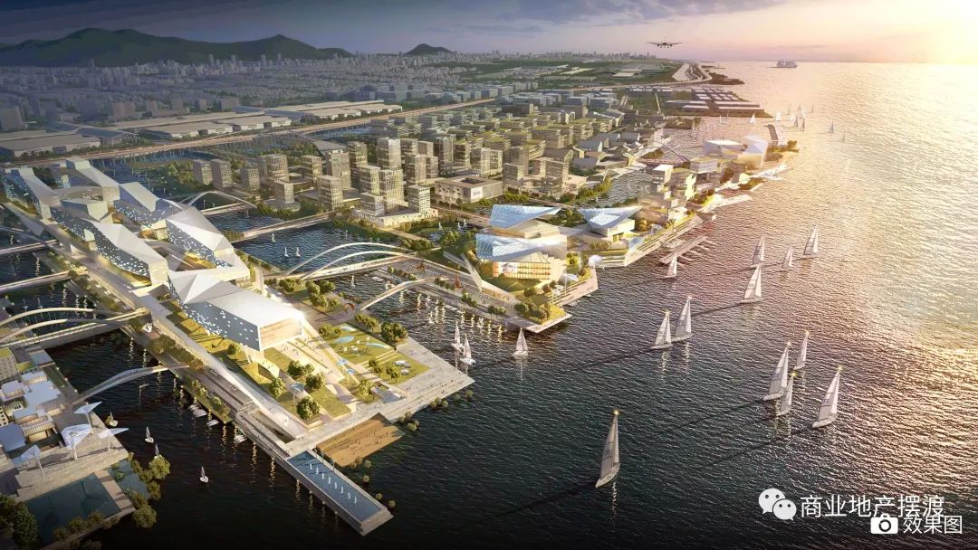 俯瞰约6.4km一线会展河,远眺深圳西部海湾